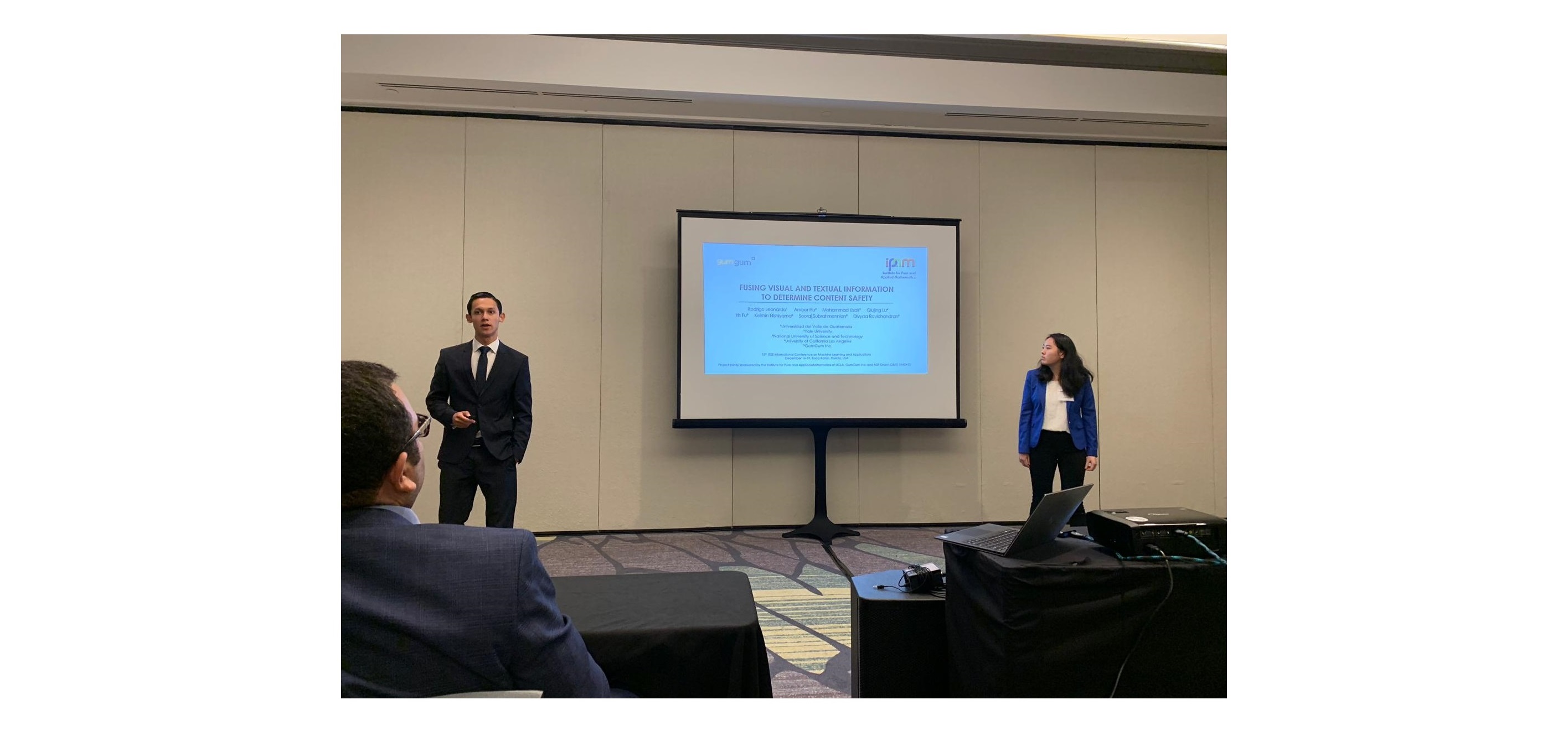 Team GumGum from RIPS 2019 cohort presented at the 18th IEEE International Conference on Machine Learning and Applications (ICMLA) 2019, on December 16-19 at Boca Raton, Florida. Their paper proposal, Fusing Visual and Textual Information to Determine Content Safety, was accepted as a full paper by the IEEE for the Machine Learning in Advanced Machine Vision special session of ICMLA 2019. Only seven out of 21 papers were selected for publication and they were also invited to give a talk at this conference.