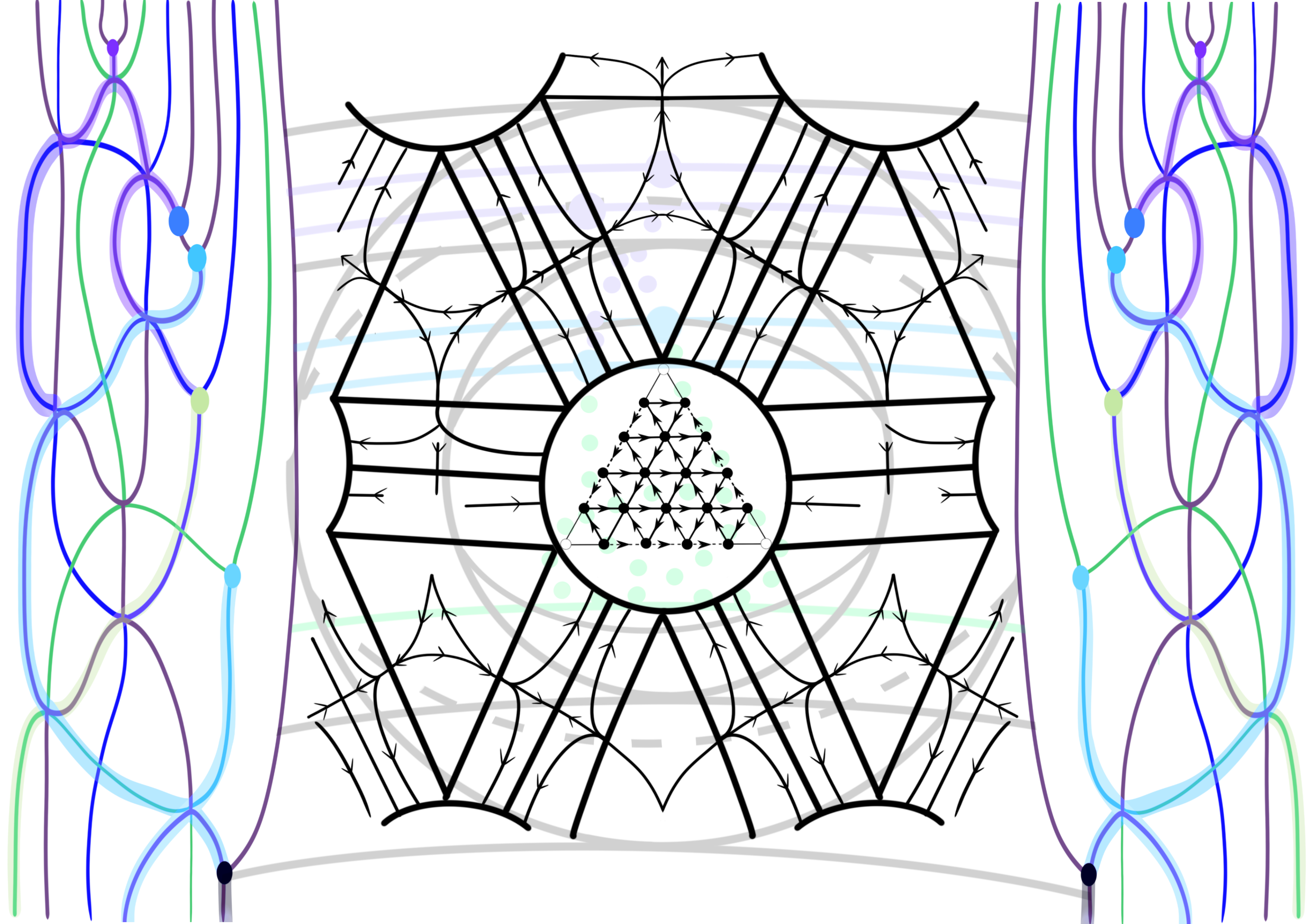 Unifying these four streams is the formalism known as skein theory. Skein relations are elementary algebraic relations, typically encoded by embeddings of 1- and 2-dimensional singular submanifolds into ambient 2-, 3- or 4-manifolds, and equipped with various decorations informed by representation theory. Skein invariants provide an accessible point of entry: without a lot of background, a lot of the intuition in these areas can be conveyed by hand-drawn pictures. The streams all involve hands-on geometric and combinatorial constructions, cutting/gluing/TQFT-like properties, and computation via diagrams, which we hope will facilitate Rosetta-stone like translations between previously disjoint fields