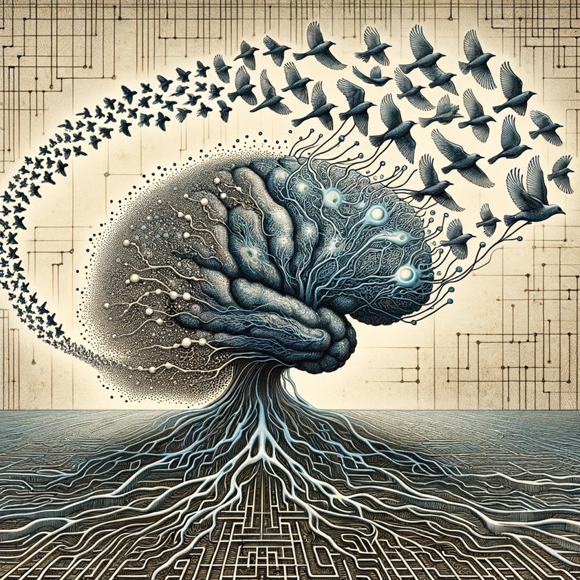 taxa. Traces of intelligent behavior are typically high-dimensional, with complex structure in space and time. They often involve multiple data streams: for example, positional information from individual members of a bird flock, as well as “point-of-view” recordings showing what birds are looking at, moment by moment; or electrocorticographic recordings of human brain activity, as well as detailed traces of motor behavior. These traces are often buried beneath complex noise environments: individual animal movements must be pulled out of extensive visual clutter; whale song must be isolated from ocean noise.